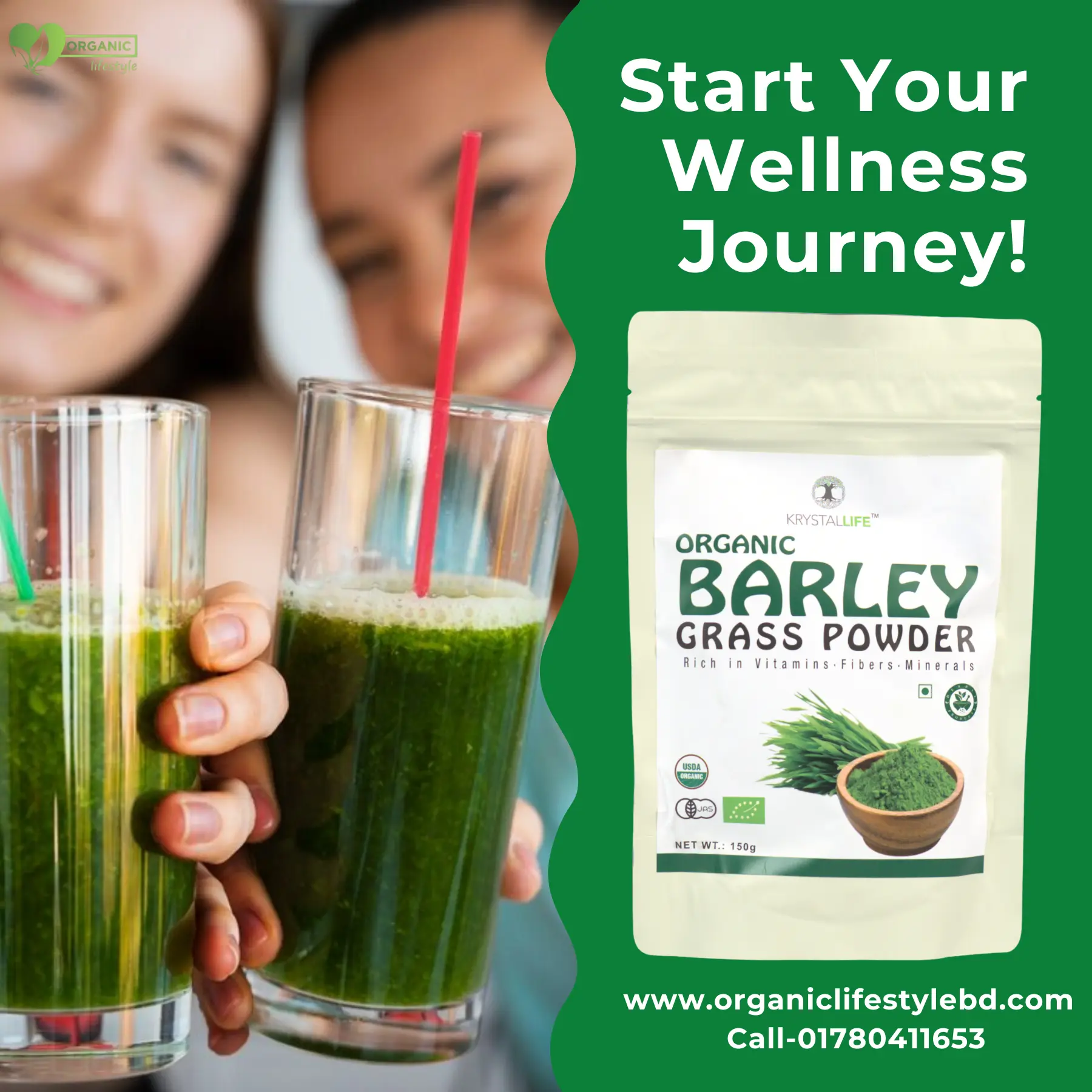 Krystallife Organic Barley Grass Powder – প্রাকৃতিক ডিটক্স ও গ্রিন সুপারফুডের শক্তিশালী সমাধান